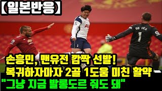 [실시간 일본반응]손흥민, 맨유전 깜짝 선발! 복귀하자마자 2골 1도움 미친 활약! 득점 랭킹 1위 "그냥 지금 발롱도르 줘도 돼"[보기]