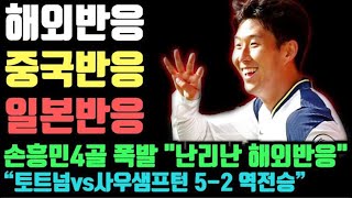 ▶손흥민 4골 폭발"난리난 해외반응" "토트넘vs사우샘프턴 5-2 대역전승"(해외반응)(중국반응)(일본반응)[보기]